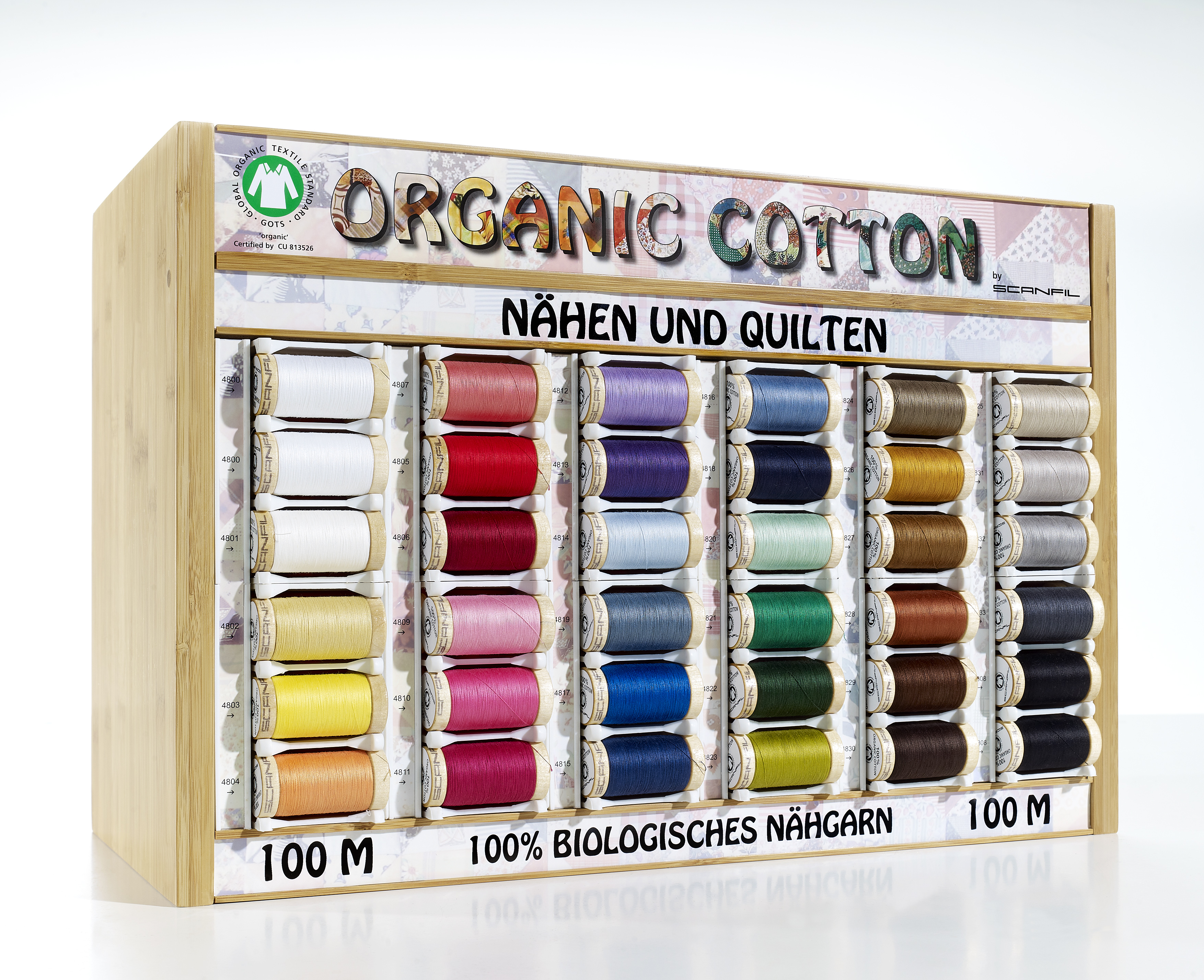 Mit diesem 100% biologischen Nähgarn kann sinnvoll zum Schutz unserer Umwelt beigetragen werden. Weltweit werden 25% an Insektiziden und 10% an Pestiziden allein an Baumwollpflanzen eingesetzt. Forbitex hat aufgrund dieser erschreckenden Zahlen gehandelt und als erster Garnfabrikant eine komplette Farbauswahl organischer Baumwollfäden entwickelt. Sämtliche Produktionsprozesse des Scanfil Organic Cotton Baumwollgarns folgen den Richtlinien der GOTS (Global Organic Textil Standard).